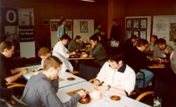 Das ausführliche Protokoll folgt demnächst. (Christoph Gerlach) Neues Portal zu DGoB-OrganisationsarbeitDer DGoB hat ein neues Portal zu DGoB-Organisationsarbeit unter http://www.dgob.de/dgob/orga/ Dort kann man sich auch in die neue Orga-Mailingliste des DGoB eintragen. Auf dieser offenen Mailingliste sollen alle Fragen der Organisationsarbeit im DGoB behandelt werden. Teilnehmen kann jeder, insbesondere aber DGoB-Mitglieder. Auf dieser Liste kann man auch allgemeine Fragen zur Struktur und Arbeit des DGoB stellen. (Christoph Gerlach) Blitzturnier März (4.3.2002)Bei 16 Teilnehmern wurde das März-Blitzturnier mit 4:0 von Christoph Gerlach (Blitz-7-Dan) gewonnen. Mit je 3:1 folgten Wulf Kunisch (1 Dan), Peter Schnaus (2 Kyu), Winfried Finke und Zhang I (1 Kyu). Die Jahreswertung führt weiter Jürgen Breuer an. (Christoph Gerlach) Sushi-Essen bei "Kyoto" (7.3.2002)Immerhin dann doch 11 Go-Spieler aus Hannover (und Vororte) waren beim Sushi-Essen plus Go-Spielen in der Sushi-Bar "Kyoto" dabei. Die Zeit vor der Vorspeise wurde allgemein mit Gobang und Gomuku (Gobang für Erwachsene) vertrieben, während nach dem wesentlichen Teil der Sättigung (klar, dass Detlev noch eine kleine Nachspeise orderte) Familien-Go gespielt wurde. Mir fiel mal wieder erst mit vollem Magen ein, dass ich ja eigentlich extra einen Fotoapparat mitgebracht hatte, um die aufgetischten Sushi-Sets samt in Vorfreude begriffener Gesichter der Go-Spieler abzulichten... Wenigstens habe ich jetzt ein Foto wie Peter Hein an die Decke guckt und dabei Wasabi pur als Nachtisch futtert. (Christoph Gerlach) Harburg (9./10.3.2002)Mit sagenhaften zwei Autos fuhren Go-Spieler aus Hannover zur 1. Harburger Mausefalle, so das neue Hofturnier von Steffi Hebsacker und Tobias Berben. Mit 77 Teilnehmern wurde das Turnier von der Szene sehr gut angenommen. Etwas ungewöhnlich war die Tatsache, dass zwei der Top-Spieler des Turniers die dritte Runde aussetzten und dadurch den Ausgang des Turniers etwas im Unklaren ließen. Tobias entschied, dies zu Ungunsten der Spieler auszulegen und so kam es zum Einlauf Christoph Gerlach (6 Dan) mit 4:1 auf Platz 1 vor Michio Kawamiya (5 Dan, Kiel) mit 4:0 auf Platz 2 (obwohl er gegen mich gewinnen konnte) und Felix von Arnim (5 Dan, Hamburg) ebenfalls mit 4:0. Die Ergebnisse aller Hannoveraner: Platz 1: Christoph Gerlach (6 Dan), 4:1 (Christoph Gerlach) Hikaru no Go-WebseiteToriyamaworld bezieht einen neuen Server im Internet, womit es wohl ein paar Probleme gibt. Bis dahin findet man die englischen Übersetzungen des Hikaru no Go-Mangas (jetzt bis Folge 71) unter http://toriyamaworld.chambergates.com/hikago/. 13x13-Turnier März (18.3.2002)Burghard Probst (1 Dan) konnte bei seiner ersten Teilnahme in diesem Jahr gleich ein 5:0 abliefern. Mit 4:1 folgte Peter Schnaus (2 Kyu) auf Platz 2. (Christoph Gerlach) Hamburger Baduk-Turnier (24.3.2002)Weil ich wegen dem Anime-Marathon sowieso gerade in Hamburg war, habe ich dieses Jahr mal wieder das jährliche Go-Turnier des koreanischen Vereins in Hamburg mitgespielt. Seit letztem Jahr wird es in einem koreanischen Restaurant gespielt, inklusive leckerem Buffet für alle ca. 45 Teilnehmer. Und es wurde natürlich anständig gezockt. Bei 30 Minuten Sudden Death (ohne Byoyomi) lassen sich auch eine ganze Menge Partien in einen Tag hineinstopfen. So wurden zwei Gruppen mit 16 Spielern gebildet, die erst mal 4 Runden System gespielt haben. Jeweils die ersten acht beider Gruppen bildeten dann für den Nachmittag eine neue Gruppe nach gleichem System, wie auch die jeweils hinteren acht. Da alle Partien mit um 1 verminderter Vorgabe gespielt wurden, hatten hier alle Spieler eine Chance, sich auf die vorderen Plätze zu schieben. So kam Uwe Lanz (2 Kyu) auf den dritten Platz. Die vordersten Plätze gingen aber an die Hochdans: Zweiter wurde Kim (4 Dan, Hamburg) hinter Christoph Gerlach (6 Dan, Hannover). Da die Siegerehrung zügig eingeleitet wurde, konnte ich gerade noch so den letzten Zug um 21.28 nach Hannover erreichen. (Christoph Gerlach) Paris (30.3.-1.4.2002)Ich kann mich noch an Zeiten erinnern, als regelmäßig zwei Autos von Hannover zum Pariser Osterturnier fuhren. Manche Sachen wiederum ändern sich nie: Die Qualität der Wan-Tan-Suppen natürlich! Als einziger Vertreter aus Hannover habe ich - auch weil ich ziemlich verschnupft/erkältet war - 3:3 gespielt und bin unter ferner liefen gelandet. Insgesamt haben über 200 Spieler teilgenommen, von denen Fan Hui (7 Dan, Frankreich/China) zu Null gewinnen konnte. Also dann aber nächstes Jahr! (Christoph Gerlach) Blitzturnier April (8.4.2002)Mit Zhang Yi (1 Kyu) hat sich beim Blitzturnier ein neuer Name in die Siegerliste eintragen können. Er besiegte im Finale Jürgen Breuer (Blitz-1-Kyu). Neben Jürgen hatten noch Hartmut Grote, Burghard Probst und Michael Kügler 3 Punkte. (Christoph Gerlach) Hannoversches Zwei-Kyu-Treffen (11.4.2002)Am 11. April 2002 trafen sich erstmals alle sieben Zwei-Kyu-Spieler aus Hannover (Bertram, Breuer, Exler, Finke, Hild, Klemm, Schnaus) bei mir in der Wohnung. Ab 18 Uhr lief ein Fünf-Runden-Turnier mit 20 Minuten Bedenkzeit pro Spieler. Das Feld war ziemlich ausgeglichen. Herr Exler gewann mit 4 Punkten, die meisten übrigen Spieler kamen auf drei Punkte. Das exzellente Essen, das meine Frau beisteuerte, trug wesentlich zur allgemeinen Zufriedenheit bei. (Peter Schnaus) DM-Vorrunde in Berlin (10.-12.4.2002)Puh, das war ein Stück Arbeit. Trotz einer Niederlage gleich in der zweiten Runde gegen Carsten Liebold (5 Dan) konnte ich mich mit 5:1 wieder für die DM-Endrunde diesen Jahres qualifizieren. Neben Egbert Rittner (Meister) und FJ Dickhut (Vizemeister) qualifizierten sich Robert Jasiek (5 Dan, 6:0), Bernd Radmacher (4 Dan, 5:1), Christoph Gerlach (6 Dan, 5:1), Marko Leipert (4 Dan, 4:2), Tobias Berben (!, 4 Dan, 4:2) und Marco Firnhaber (5 Dan, 4:2). Andere favorisierte Spieler wie Felix von Arnim und Lutz Franke konnten sich nicht durchsetzen. (Christoph Gerlach)