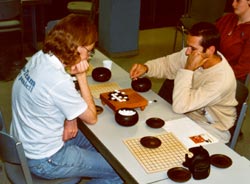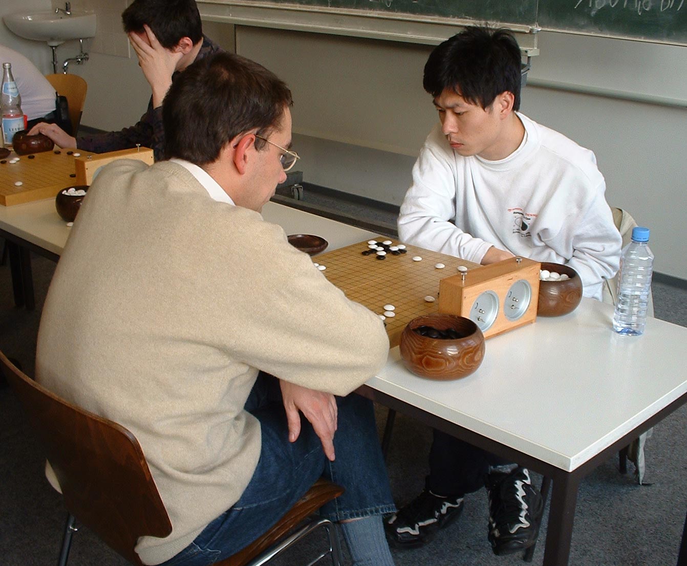 13x13-Turnier April (22.4.2002)Nach dem Blitzturnier konnte Zhang Yi (1 Kyu) auch das 13x13-Turnier gewinnen, wenn auch nur durch den direkten Vergleich, nachdem er nach SOS und SOSOS mit Jürgen Breuer (2 Kyu) und ebenfalls 4:1 Punkte gleichstand. Auf Platz 3 folgt auch mit 4:1 Punkten Christoph Gerlach (6 Dan). (Christoph Gerlach) Köln (27./28.4.2002)Unter 122 Teilnehmern belegten die Hannoveraner die folgenden Plätze: Platz 80) Fabian Rosenschein (4 Kyu), 1:4