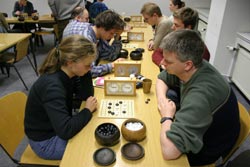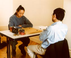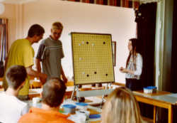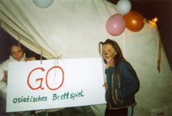 DM-Vorrunde in Bayreuth (27.-29.6.2003)Interessanterweise musste ich dieses Jahr auch durch die DM-Vorrunde, obwohl ich mich als geteilter Zweiter des Vorjahres wie auch Egbert Rittner für die diesjährige Endrunde vorqualifiziert wähnte. Es gab aber Funktionäre im DGoB (insbesondere auch der zuständige Fachsekretär, Guido Tautorat), welche auf jeden Fall durchsetzen wollten, dass nicht mehr als 2 Spieler direkt vorqualifiziert waren. Daraufhin wurde ein Beschluss der Delegiertenversammlung erwirkt, welcher mich auf einen ungeteilten 3. Platz zurücksetzte, obwohl sich das aus dem Spielergebnis der DM-Endrunde von 2002 nicht begründen lässt. Diesen Beschluss halte ich für ungerecht am Rande zur Absurdität, denn ein Mangel des Systems sollte nicht zum individuellen (und willkürlichen) Nachteil eines Spielers werden. Dies schien aber den Delegierten die leichteste Lösung, der sich sogar in entscheidender Weise Klaus Blumberg für den Landesverband Niedersachsen anschloss. Diesem werfe ich seither vor, dass er die Interessen seiner Mitglieder willentlich nicht vertritt und forderte ihn deshalb auch schon zum Rücktritt auf. Ihr habt auch eine Meinung dazu? Schreibt doch eine Mail an den Vorstand des Niedersächsischen Go-Verbandes. So kam es dazu, dass ich zur Vorrunde musste, die einmal 3 Tage beansprucht, ca. 100 Euro kostet und selbst bei optimalen Spiel nicht mehr als die Startberechtigung zur Endrunde einbringt. Außerdem bedeutet das 34 Spieler große Teilnehmerfeld, dass kein Spieler sich sicher qualifizieren kann. Wenigstens hat sich der Aufwand für mich gelohnt, denn ich konnte mich mit 6:0 glatt für die Endrunde qualifizieren. Auf die folgenden Plätze kamen (und sind auch qualifiziert) Benjamin Teuber, Felix von Arnim, Bernd Schütze, Zhao Pei und Liu Yang. (Christoph Gerlach) Blitzturnier Juli (7.7.2003)Zhang Yi (2 Dan) gewann mit 4:0 vor Peter Kassigkeit, Ralph Tiefenthaler, Burghard Probst und Peter Schnaus, die 3:1 spielten. Prominente Neu-HannoveranerWir dürfen uns auf den Zuzug von Lisa Ente (3 Dan) und Christian Rathje (3 Kyu) aus Kiel freuen! Die beiden werden ab dem Wintersemester in Hannover studieren und suchen gerade eine Wohnung in Hannover. Ab Mitte September werden sie wohl dauerhaft bei uns wohnen. Herzlich willkommen! Animagic Koblenz (25.-27.7.2003)Wieder ein Go-Workshop auf einer Anime-Convention mit Beteiligung aus Hannover. Go-Spielen im MezzoIn der Sektion "Mezzo, Menschen, Milchkaffee" wurden die Fotos vom Go-Spielen auf den Internet-Seiten des Mezzo Blitzturnier August (4.8.2003)Kann man bei 30° im Schatten Go spielen? Immerhin 10 Leute hielten das für möglich und spannend wurde es auch. Nachdem Yi, Peter und Jürgen B. nur gegeneinander Punkte abgegeben hatten und dann auch noch Burghard 3 Punkte erreichte, hatte nach Auszählung der Gegnerpunkte Jürgen nur gerade mal die Nase vorn. Im Wettstreit um die Jahreswertung bleibt das führende Quartett weiter dicht zusammen, nur Ralph fällt vom zweiten auf den vierten Platz. (Jürgen Breuer) Spielabendturnier ab 15.9.2003Ab dem 15.9.2003 startet mit gleichem Muster wie im Vorjahr wieder ein Spielabendturnier. Alle Modalitäten können der Ausschreibung entnommen werden. Die Anmeldung ist ab sofort per e-mail an Christoph Gerlach möglich. Die Turnierleitung liegt bei Jürgen Breuer. Wir hoffen wieder auf rege Teilnahme! Leksand Open/Schweden (9./10.8.2003)"Begin at the beginning, and go on till you come to the end: then stop." Diesen weisen Ratschlag aus "Alice im Wunderland" will ich befolgen, und beginne mit der Vorgeschichte: Ich bin überhaupt erst auf die Idee gebracht worden dieses Turnier zu besuchen, als ich, verzweifelt versuchend meinen dreiwöchigen Schweden-Urlaub mit Go-bezogenem Inhalt zu füllen, unerwartet den rettenden Ratschlag erhielt: "Überhaupt kein Problem, genau in der Zeit finden doch die Leksand Open statt." Die Entscheidung, dort hinzufahren, war getroffen bevor der vorangehende Satz voll ausgesprochen war, und die Planungs- und Vorbereitungsphase verging wie im Fieber, Ryan-Air wurde für den Rückflug engagiert, da meine restliche Reisebegleitung schon früher zurück musste. Das war nicht ganz einfach, da man über Internet buchen und bezahlen muss, aber sagenhaft billig: 5 Euro für den Flug, mit Flughafengebühr 25 Euro, und der Rest war nach dem Motto "Das klappt schon irgendwie!" auch geregelt. Nach den drei Wochen "Normal-Urlaub" war es dann soweit: Nach längerer Zugfahrt quer durch Schweden, bei der ich ausschließlich netten Leuten begegnete: Erst am Bahnhof: Der Automat schlug einen Preis von 1000+ Kronen vor, ca. 110 Euro, bei Nachfrage am Schalter waren es dann beim ersten Versuch nur noch 750 Kronen, die aber nach einem (schnellen und freiwilligen!) Blick in den Computer noch mal auf 500 Kronen herunterkorrigiert wurden. Dann im Zug: Erst sprach mich ein netter Mann an, ob ich Go spielte (ich hatte betont auffällig meine "1001 Life and Death Problems" aufgeschlagen), und stellte sich nach einigen Höflichkeiten als japanischer 2 Dan heraus, der gerade von einer Esperanto-Konferenz in "Gothenburg" kam. Wir spielten einige Partien auf seinem 9x9 Brett, von denen ich den Großteil gewinnen konnte, er hatte nach eigener Aussage noch nie auf einem kleinen Brett gespielt, und es war ihm auch zu "beengt". Schnell besorgte er sich einen Stift und fügte jeweils eine horizontale und vertikale 10. Linie hinzu, was ihm erstaunlicherweise eine sehr deutliche Entfaltung seiner Spielstärke ermöglichte. Ein netter Nebeneffekt war eine Einladung nach Japan, für die ich jetzt nur noch Esperanto zu lernen brauche, nichts leichter als das. Nach sechs Stunden fahrt, auf denen ich mindestens 5 weitere interessierte Schweden (andere scheint es sowieso nicht zu geben) zumindest mit den Regeln vertraut machen konnte, erreichte ich Leksand, wo ein gut gelaunter, wenn auch überarbeiteter Martin Stiassny auf uns (ein 1 Dan aus Dänemark und sein Vater waren im selben Zug w
