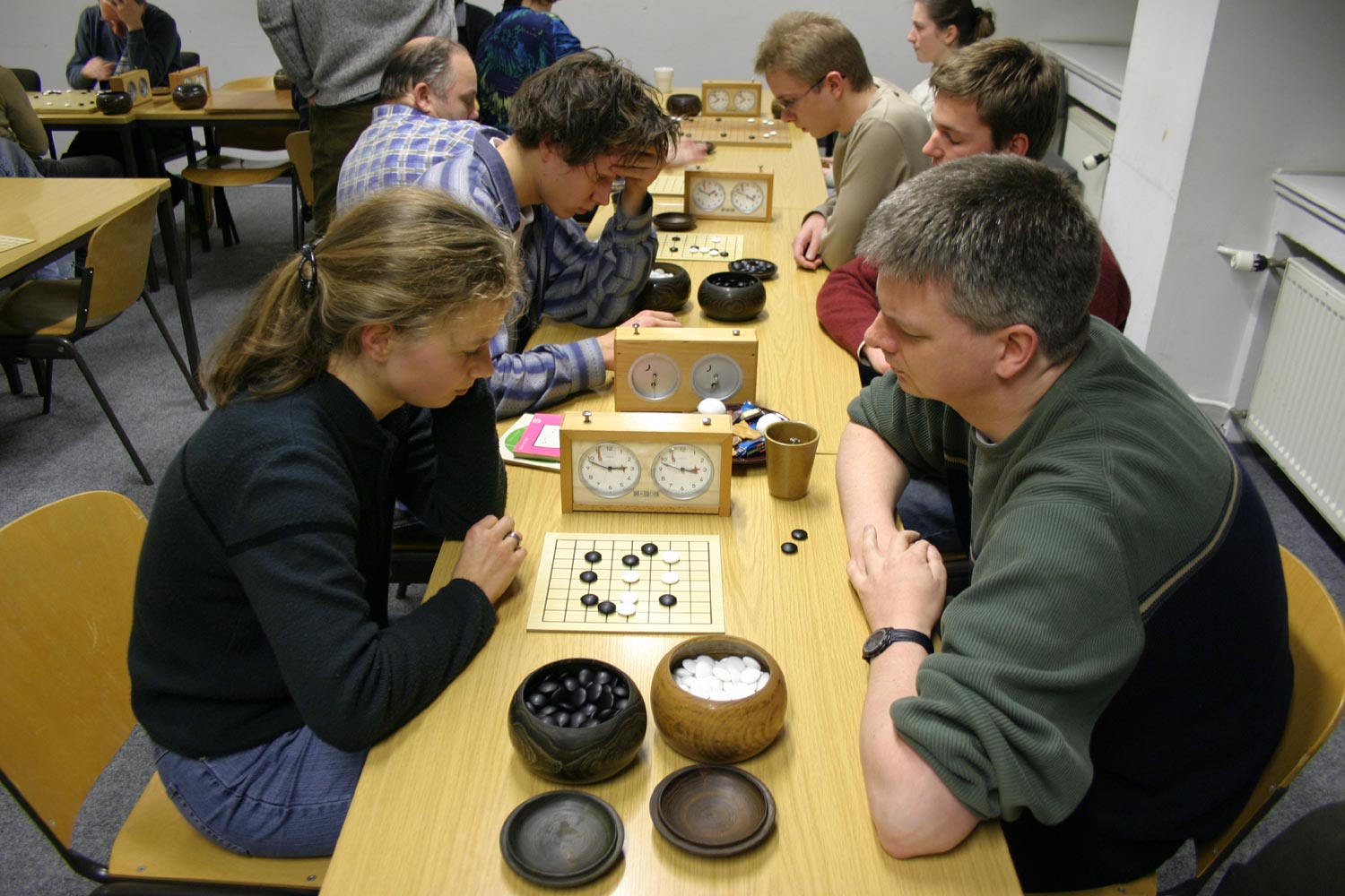 Spielabende in HannoverLeider müssen die Spielabende Donnerstags im Kalabusch und Freitags in Bothfeld bis auf weiteres mangels Interesse geschlossen werden. Eine vollständige Auflistung der Spielabende in und um Hannover gibt es auf der Seite zu den Spielabenden. Ausstellung "Zug um Zug" verlängertDas Landesmuseum hat seine laufende Ausstellung "Zug um Zug" Neues japanisches RestaurantIm Volgersweg 18 hat ein neues Sushi-Restaurant aufgemacht, Tomo Sushi. Bei Gelegenheit sollten wir das mal antesten. Vielen Dank an Peter Hein für den Hinweis. Bonn (22./23.2.2003)Aus Hannover mal wieder nur die Spar-Beteiligung, obwohl das Turnier selbst mit 131 Teilnehmern - davon fast 40 im zweistelligen Kyu-Bereich - recht groß war. In Bonn werden traditionell 6 Runden mit etwas kürzerer Bedenkzeit (45 Minuten plus 20 Steine in 5 Minuten) gespielt. Der Turniersieg ging an den neu aufgetauchten Japaner Asai Hideki (6 Dan) mit 6:0. Die Hannoveraner schnitten so ab: Platz 2: Christoph Gerlach (6 Dan), 5:1 (Christoph Gerlach) Ing-Cup Amsterdam (28.2.-2.3.2003)Der Ing-Cup (eines der paar großzügig gesponserten Go-Events in Europa) findet immer abwechselnd in Amsterdam oder einem anderen geeigneten Ort in Europa statt. Amsterdam liegt nah, also nehme ich da auch ab und an dran teil, wenn ich auch dieses Mal in meiner Ansicht bestärkt wurde, die Ing-Regeln gehörten auf den Mond geschossen. Man hat 72 Minuten Bedenkzeit und dann noch ein mal 35 Minuten, für deren Verbrauchen man aber in drei Stufen 2, 4 bzw. 6 Strafkomi zahlen muss. Vorsichtshalber an so krummen Minutenzahlen, dass ich selbst nach reichlichem Ausschöpfen in 5 meiner 6 Partien noch nicht sagen kann, wo es wieder Strafe gibt. Nachdem ich in der ersten Partie deswegen sogar einen Endspielfehler gemacht hatte (und mit einem Punkt verlor), entschied ich, mich einfach überhaupt nicht um die Zeit zu kümmern und am Ende zu gucken, was mit den Strafkomi so rauskommt. Und das hat dann in allen folgenden Partien außer gegen Catalin Taranu (Pro-5-Dan) ganz hervorragend geklappt, so dass ich mit 4:2 und Platz 8 in dem doch sehr starken Teilnehmerfeld sehr zufrieden bin. Die anderen Deutschen schlugen sich wacker, Bernd Radmacher (4 Dan) mit seinem 3:3 sogar sehr gut. Felix von Arnim (5 Dan) dürfte mit seinem 1:5 nicht ganz zufrieden sein. Einen richtigen Gewinner gab es beim Ing-Cup nicht: mit Guo Juan, Catalin Taranu, Csaba Mero und Cristian Pop teilen sich vier Spieler mit je 5:1 Siegen die Spitze. Alle Ergebnisse gibt es hier (Christoph Gerlach) Blitzturnier März (3.3.2003)Gewonnen hat Jan Petzold (1 Dan) mit 4:0. Insgesamt nahmen 14 Spieler teil. Hamburg Harburg (8./9.3.2003)Ja, das Pokalfieber hat die Deutsche Go-Szene wieder erfasst! Mit 129 Spielern hatte die 2. Harburger Mausefalle mehr Teilnehmer als der Affensprung im vergangenen Jahr! Sicher ein Verdienst von Steffi Hebsacker und Tobias Berben, die sich voll der Organisation ihres "Familienturniers" widmen und vor allem auf dem Verpflegungssektor Außergewöhnliches bieten. Und die Hannoveraner spielten so: Platz 1: Christoph Gerlach (6 Dan), 5:0 Alle Ergebnisse gibt es hier Und ich habe die Gelegenheit zur Beschaffung zwei neuer Titel für die Bücherei genutzt (beide demnächst dort entleihbar): "Keshi and Uchikomi" von Iwamoto Kaoru, 9 Dan (Christoph Gerlach) Fußball (5.4.2003)Hmmmmmmm, da habe ich doch etwas ein langes Gesicht gemacht, dass nun außer mir gar niemand zum Fußball-Termin gekommen ist. Dabei wäre der Boden sehr gut bespielbar gewesen und kalt war es auch nicht besonders. Sogar die Sonne hat zeitweise geschienen. Sieht also so aus, als würde sich für den nächsten Termin wer anders drum kümmern ... (Christoph Gerlach) Blitzturnier April (7.4.2003)Endlich mal wieder das volle System mit 16 Teilnehmern, dank Amelie, Tins Tochter, die erstmals mitblitzte. Der Sieg ging aber an Zhang Yi (1 Dan) mit 4:0. Drei Partien gewannen Christoph Gerlach, Ralph Tiefenthaler, Peter Kassigkeit und Alex Voigt. (Christoph Gerlach) Neuer Anfängerkurs auf dem DienstagsspielabendAm 22.4.2003 um 20 Uhr startet auf dem Dienstagsspielabend an der Uni (Königsworther Platz 1) ein neuer Anfängerkurs. Es darf auch wieder im Bekanntenkreis geworben werden. Der Kurs wird wie gehabt von Ralph Tiefenthaler betreut. Anime-Marathon in Neuss (11.-13.4.2003)Unter der Führung der Go-Gruppe Hannover wird dort ein weiterer Go-Workshop veranstaltet. Spielpartner gesuchtHans-Eckart Lüthke (1 Kyu) besucht am Donnerstag, den 17.4.2003, Hannover und würde sich für den Abend sehr über einen Spielpartner freuen. Bitte zwischen 8 und 17 Uhr unter 0385 / 588 4612 melden!