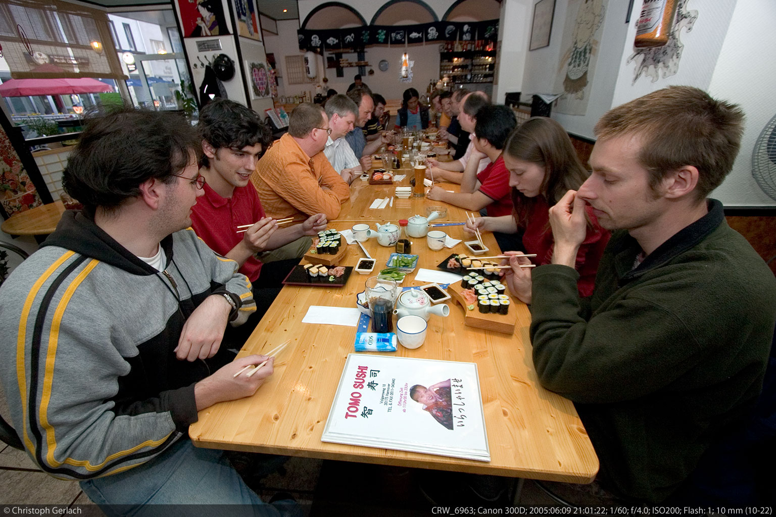 Das Mannheimer Turnier wurde maßgeblich von Jan Czeranski organisiert, den manche vielleicht noch aus seiner Zeit in Hannover in Erinnerung haben. Am Samstag gab es zunächst einen kleinen Materialengpaß zumal einiges an Spielmaterial auf der Autobahn im Stau stand. Schließlich war der Tisch dann doch für die 136 Teilnehmer gedeckt und der Rest des Turnier lief reibungslos. Sehr gefallen hat mir das China-Buffet am Abend bei dem auch Go-Bretter noch in reichlicher Zahl gezückt wurden.