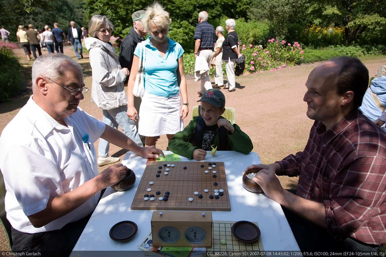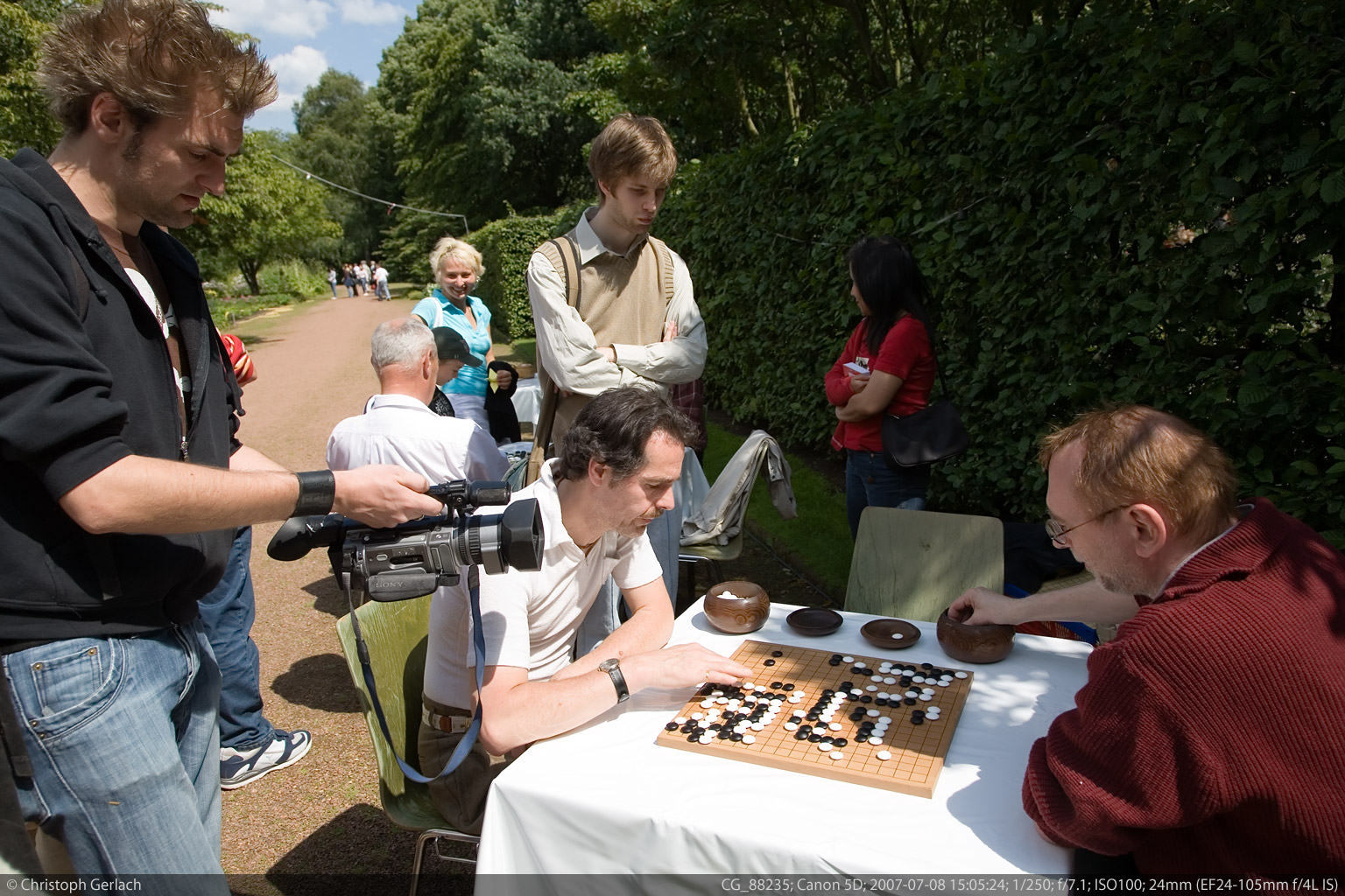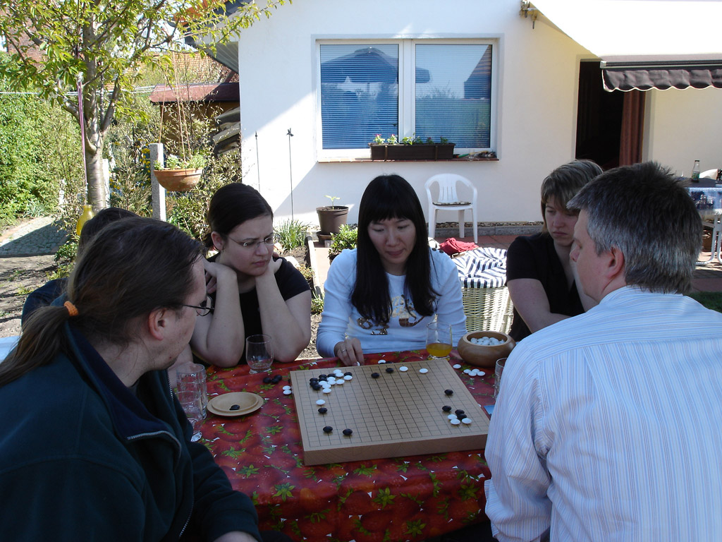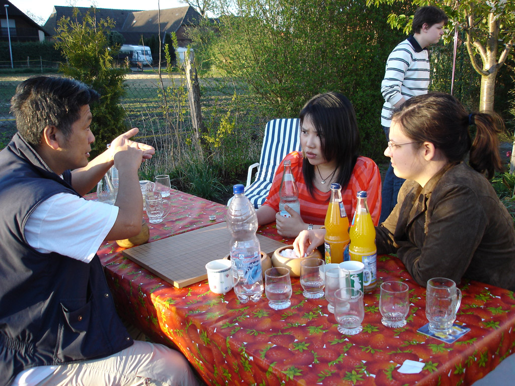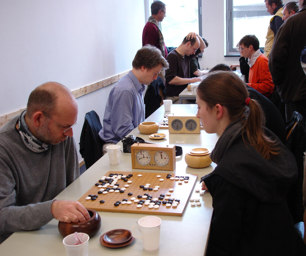 Am Zielort trafen wir noch Michael Thon, Uwe Schmidt und Benny Heuer aus Hannover, die mit dem Auto schon angekommen waren. Natürlich waren auch noch viele andere tolle und nette Go-Spieler da, darunter Malte Kracht, der jetzt für Flensburg spielt, aber insgesamt zu viele, um hier von allen zu erzählen. Waren nicht, wie der Veranstalter T. Berben am Ende ganz stolz erzählte, unglaubliche 142 Teilnehmer da? Oder waren es doch 152?