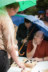 Blitzturnier August (3.8.2009)Sieger: Heuer, 4 Punkte Kassigkeit, Probst, Rüffer, Tiefenthaler je 3 Punkte Tabellenspitze (gewonnene Partien/Turniere/Turniersiege): (Peter Schnaus) Blitzturnier September (7.9.2009)Zum Blitzturnier am 7. September kamen 16 Go-Spieler, darunter drei erstmalige Teilnehmer. Die Go-Gruppe am Montag ist also recht lebendig. Sieger mit vier Gewinnpartien wurde Meyer-Lüdgens, drei Siege erzielten Bilitewski, Breuer, Heuer und Wenzel. Da der Tabellenführer in Urlaub war, wird es diesmal vorne ganz spannend. Tabellenspitze (Gewinnpartien/Turniere/Siege): (Peter Schnaus) Blitzturnier Oktober (5.10.2009)Sieger: Tiefenthaler 4 Siege, Heuer und Probst je 3 Siege Neuer Stand an der Tabellenspitze (Gewinnpartien/Turniere/Siege): (Peter Schnaus) Deutsche Go-Meisterschaft 2009 in Frankfurt (15.-18.10.2009)Nach 1991 und 1998 gewann Christoph Gerlach zum dritten Mal die Deutsche Go-Meisterschaft. In der Endrunde setzte er sich gegen sieben Konkurrenten bei nur einer Niederlage im bedeutungslosen letzten Spiel gegen Franz-Josef Dickhut durch. Eine detaillierte Tabelle und Links u.a. zu Presseberichten gibt es auf der Webseite des Ausrichters (Christoph Gerlach) Blitzturnier November (2.11.2009)Siegerin: Ente, 4 Gewinnparten, Probst und Heuer gewannen je dreimal. Tabellenspitze (Gewinnpartien/Turniere/Turniersiege): Heuer: 30/11/3 (Peter Schnaus)
