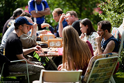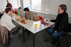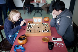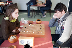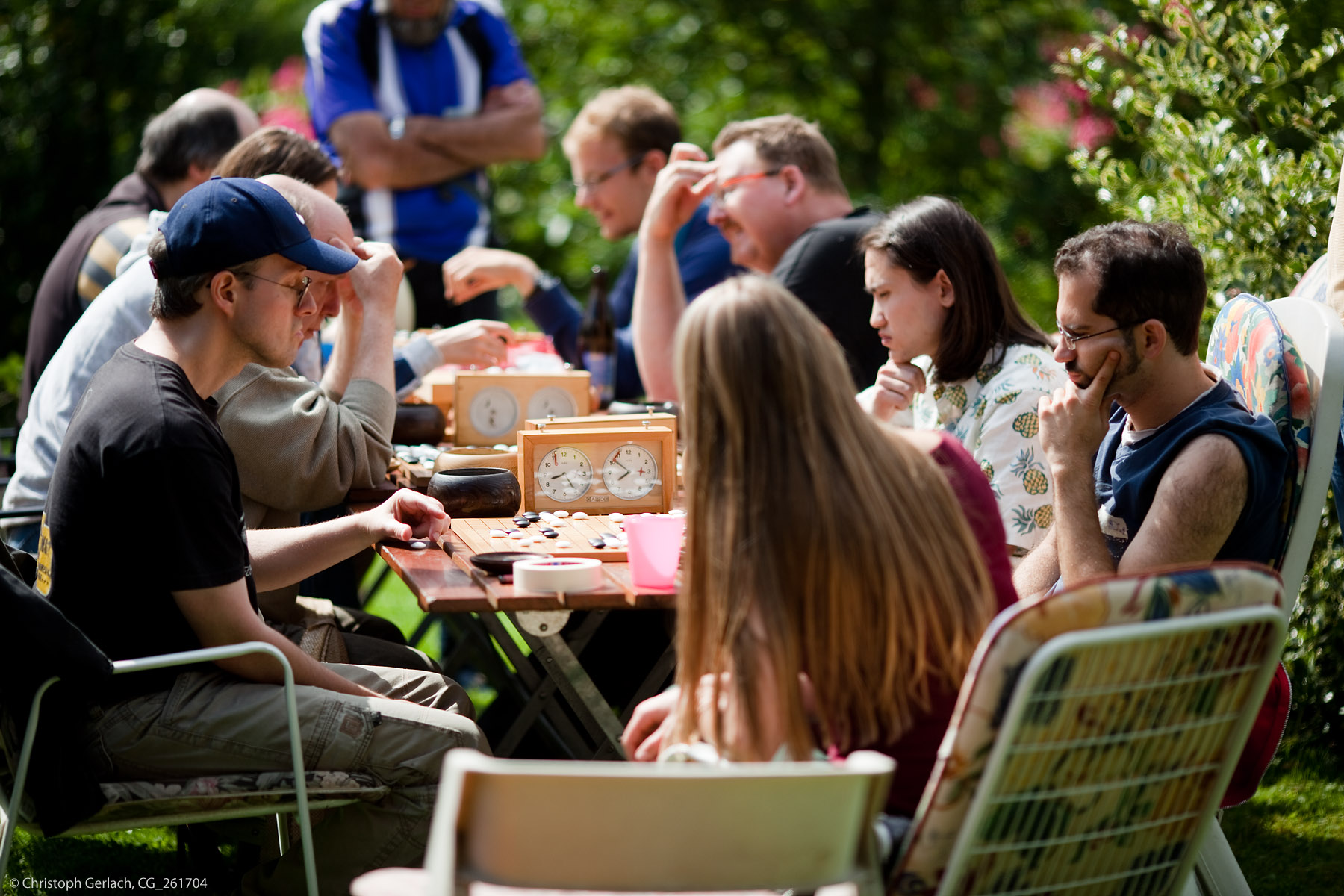 Hannover in der Go-Bundesliga 2015/2016Die Saison der Go-Bundesliga 2015/2016 ist zuende gegangen und mit einem Sieg am letzten Spieltag gegen Westfalen 1 konnte sich Hannover 1 doch noch ohne Relegation in der 1. Liga halten. Vielen Dank an unseren Mannschaftskapitän Klaus Wachholz und die Mannschaft bestehend aus Christoph Gerlach, Lutz Mattner, Yi Zhang, Klaus Wachholz und Malek Journaah. In Liga 5 platzierte sich die zweite Mannschaft "Hannover Wölfe" im vorderen Mittefeld mit ihrem Mannschaftskapitän Frank Tawussi und der Mannschaft bestehend aus Arne Steffens, Jürgen Breuer, Dierk Schmalz, Frank Tawussi, Ramona Wolf, Lev Pak und Tom Winkler. (Christoph Gerlach, 23.5.2016) Neuer Go-Anfängerkurs an der Uni ab dem 7.6.2016Vielleicht können wir die öffentliche Aufmerksamkeit für Go vom März und April noch für einen erfolgreichen Anfängerkurs an der Uni nutzen? Wir wollen es auf jeden Fall probieren und die Chancen sind gut, dass sich viele noch an die Medienberichte erinnern und neugierig sind wie das Spiel nun funktioniert. Der Anfängerkurs wird am Dienstagsspielabend an vier aufeinander folgenden Dienstagen jeweils von 20-22 Uhr stattfinden. Vielleicht habt ihr im Freundes- oder Bekanntenkreis jemanden, der sich für einen Go-Anfängerkurs interessiert? Jeder Interessent ist gerne eingeladen! Der Flyer für den Anfängerkurs mit allen Terminen und Themen kann hier als PDF heruntergeladen werden: 2016-06-07_Go-Anfaengerkurs_Uni.pdf (Christoph Gerlach, 23.5.2016) Protokoll der Mitgliederversammlung Hannoverscher Go-Verein e.V.Am 2.5.2016 fand die ordentliche Mitgliederversammlung des Hannoverschen Go-Vereins e.V. statt und das Protokoll kann jetzt hier eingesehen werden. Es standen Wahlen an und Christoph Gerlach wurde als 1. Vorsitzender wiedergewählt. Der Vorstand für die nächsten zwei Jahre besteht außerdem aus Ralph Tiefenthaler (stellvertretender Vorsitzender) und Elisabeth Ente (Kassenwart). Als neue Kassenprüfer wurden Burghard Probst und Lev Pak gewählt. (Christoph Gerlach, 13.6.2016) Go bei Jürgen im Garten (2.7.2016)![]() Mit viel Go-Spielen und Grillen nebenbei fand am 2.7.2016 ein schöner Go-Nachmittag bei Jürgen im Garten in Hannover Limmer statt, zu dem immerhin 15 Go-Enthusiasten kamen, darunter auch zwei Anfänger vom gerade zu Ende gegangenen Anfängerkurs an der Uni was mich persönlich besonders gefreut hat. Bei einem langfristig geplanten Termin hat man das Wetter nicht so im Griff und es gab manchen auch heftigeren Regenschauer, der mitunter eine "Wasserschlacht" auf dem Go-Brett nach sich zog. Aber es gab auch längere Phasen mit Sonne, so dass sich eigentlich niemand ernsthaft über den Regen beschwerte. Es gab ja auch Regenschirme und die Möglichkeit, sich in der Laube unterzustellen. Und so zog sich der um 14 Uhr gestartete Go-Nachmittag bis nach 20 Uhr hin. Eine Galerie mit mehr Fotos habe ich auf meiner Foto-Seite veröffentlicht: http://foto.cgerlach.de/go-im-garten-2-7-2016/ (Christoph Gerlach, 2.7.2016) Torsten Arndt verstorben![]() Da sitzen wir alle zusammen mit Torsten noch Ende Mai beim Helferessen vom Messeturnier zusammen und genießen gemeinsam das Sushi und spielen Go und heute muss ich euch mitteilen, dass Torsten Arndt verstorben ist. So brutal kann das Leben sein. Auf dem Foto rechts (von privat) zeigt Torsten stolz ein Diplom, das er auf einem mehrwöchigen Go-Lehrgang in Japan erworben hat. Ich denke, ich darf hier für alle sprechen: Wir kannten und schätzen an Torsten besonders seine ruhige freundliche Art und seine unbedingte Hilfsbereitschaft. Auf dem Foto rechts überträgt Torsten auf dem Messeturnier 2008 eine Partie live in das Internet. ![]() Auf dem gerade erst zuende gegangenen Anfängerkurs auf dem Uni-Spielabend war Torsten wie selbstverständlich dabei, geduldig mit Anfängern zu spielen und ihnen die Möglichkeit zu geben, Go zu erfahren. Wobei vielleicht noch wichtiger ist, den Enthusiasmus erfahren zu haben, mit dem Torsten all die Jahre dem Go verbunden war. Sehr berührt hat mich, dass es Torsten ein Anliegen war, seine gesammelten Go-Bücher und sein Spielmaterial einer sinnvollen Nutzung zuzuführen, obwohl ihm nach einer schlimmen Diagnose nur eine Woche zu leben blieb. Hierzu bin ich mit der Familie im Kontakt. Dieser Tod ist für mich persönlich ein Schock und ich denke, das wird vielen so gehen, die Torsten über die Jahrzehnte beim Go kennengelernt haben. Torsten Arndt verstarb am 18.7.2016 nach sehr kurzer Krankheit im Alter von 52 Jahren. (Christoph Gerlach, 25.7.2016) Go auf dem Japanischen SommerfestAm 14.8.2016 fand das Japanische Sommerfest im Stadtpark statt und die Verlegung vom Juli in den August bescherte uns Prachtwetter nach 3 verregneten Jahren. Das hob allgemein die Laune bei Interessenten und Go-Spielern. Eine kleine Galerie mit Impressionen habe ich auf meiner Foto-Seite veröffentlicht: http://foto.cgerlach.de/go-auf-dem-japanischen-sommerfest-hannover-2016/ (Christoph Gerlach) Go-Anfängerkurs an der Uni und 9x9-Turnier am 6.12.2016An vier aufeinander folgenden Abenden (8.11., 15.11., 22.11., 29.11.) haben wir einen netten Anfängerkurs auf dem Spielabend an der Uni-Hannover gehabt. Anfangs waren fast 30 Anfänger dabei, zum Schluss hin lässt das Interesse wie üblich nach aber ich bin guter Hoffnung, dass wir ähnlich wie vom vorhergehenden Anfängerkurs wieder ein paar neue Spielpartner gefunden haben. Zum Abschluss haben wir dann noch ein 9x9-Turnier am 6.12.2016 veranstaltet mit 4 Teilnehmern in der Anfängergruppe und 14 Teilnehmern in der Fortgeschrittenengruppe, in der mit voller Vorgabe gespielt wurde. Das lockte manchen an, der sonst nicht so oft auf den Spielabenden ist und mit Veronika und Dirk auch zwei Spieler aus Hildesheim was mich besonders gefreut habt, auch wenn alle beide mich unverschämter Weise im Turnier geschlagen haben. Mitspielen konnte ich, weil Marcel die Turnierleitung übernahm, vielen Dank dafür! In der Anfängergruppe gewann Marius ungeschlage